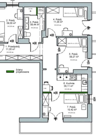 Mieszkanie zostało wykończone materiałami wysokiej jakości, które ze względu na swoje podwyższone parametry umożliwiają użytkowanie pomieszczeń również jako użyteczność publiczna.