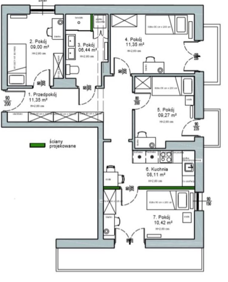 Mieszkanie wychodzi na 3 strony świata, składa z 4 oddzielnych pokoi, niezależnej kuchni i przestronnej łazienki z prysznicem o łącznej powierzchni 65,75 m2.